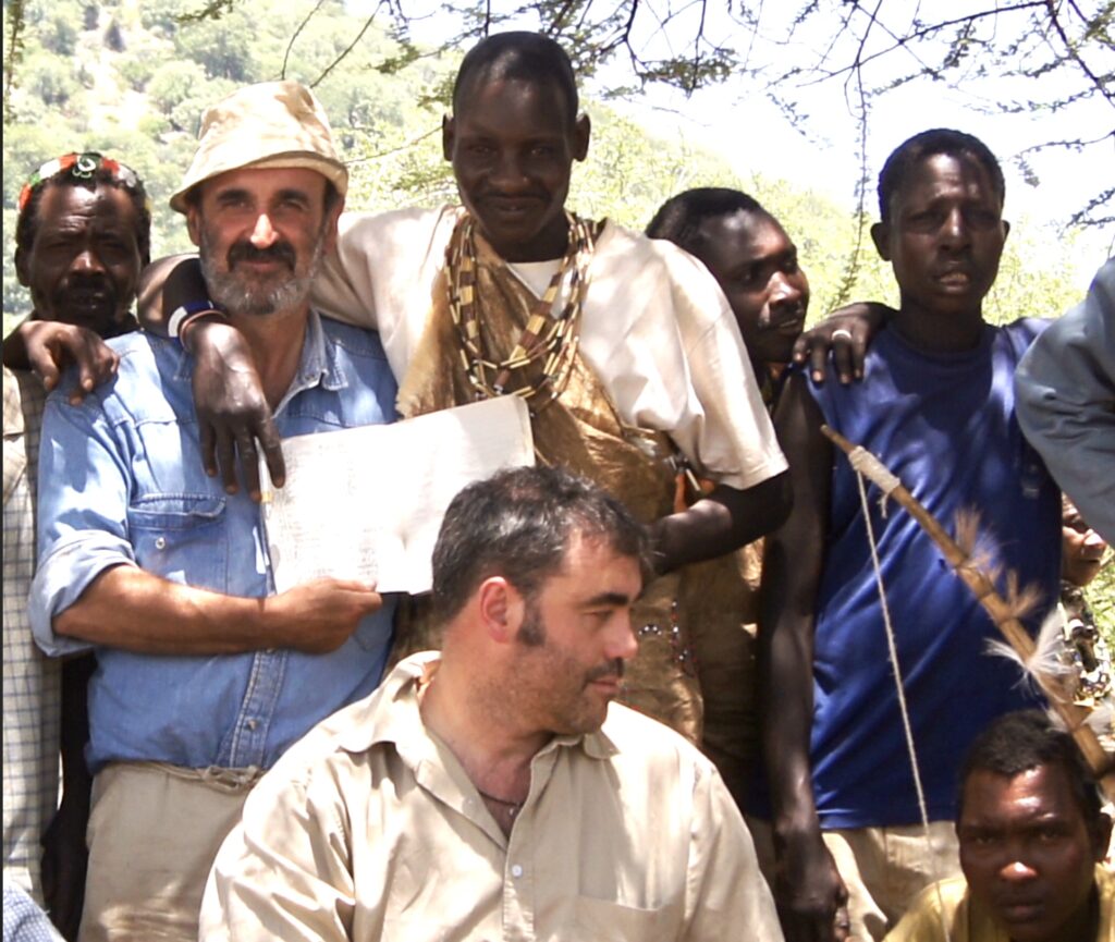 Fernando Morán’s and Benigno Varillas commitment to supporting the Hadza tribe of Tanzania through cultural respect and tribal conservation efforts. (Photo: Fernando Morán at the assembly convened by Benigno Varillas with the groups of the Hadzabe ethnic group of Lake Eyasi in Tanzania. Author©: Teresa Vicetto, 2011).